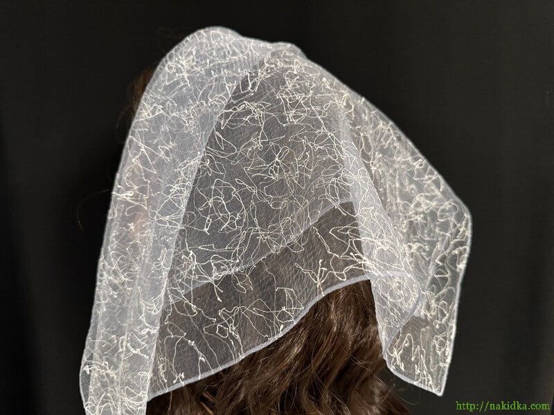 | Светло-серая с фиолетовым оттенком косынка с белой паутиновой нитью |