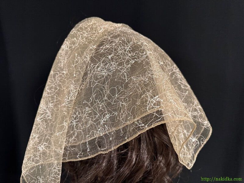 | Светло-кофейная нейлоновая косынка с белой паутиновой нитью |