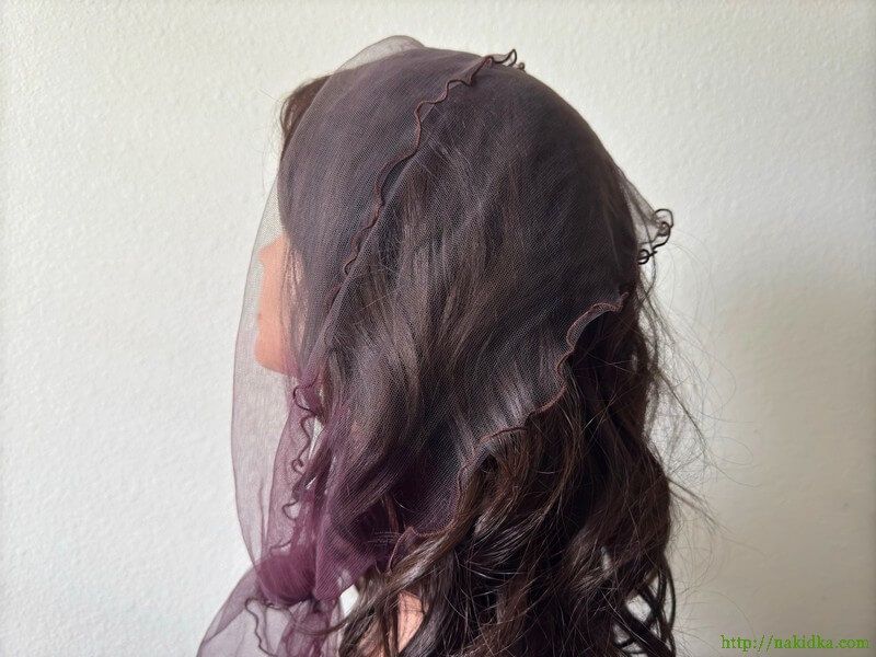| Утененный фатиновый шарф с кофейно-серой серединой и баклажано-коричневыми краями с волнистым ободком |