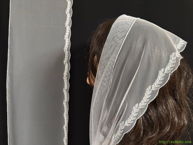 | Белый фатиновый шарф с белым вышитым по краю узором |