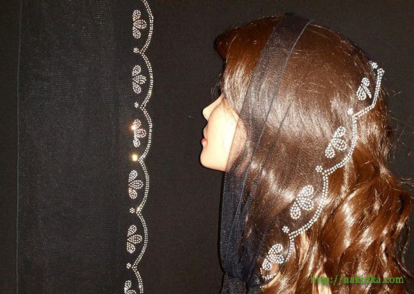 | Черный легкий фатиновый шарф с наклееным блестящим узором |