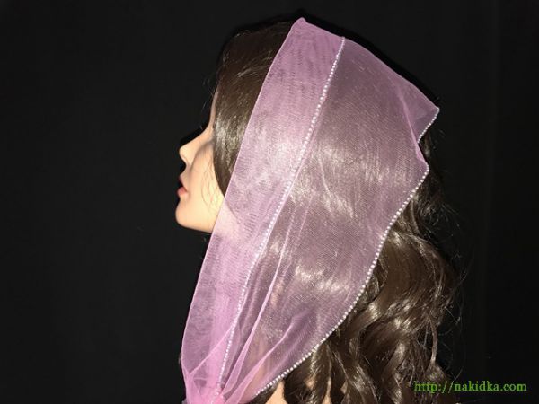 | Розовый легкий фатиновый шарф с наклееным блестящим узором по краю |