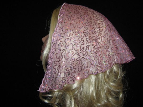 | Розовая фатиновая накидка с вышитой блестками аппликацией с волнистой передней кромкой |