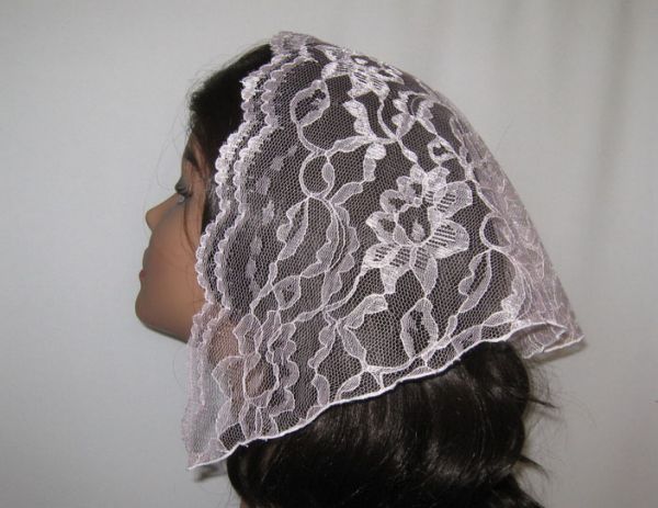 | Светло-розовая гипюровая накидка с узором и волнистой передней кромкой |