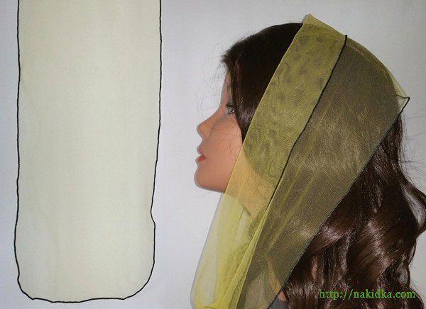 | Желтый легкий фатиновый шарф с черным прямым ободком |