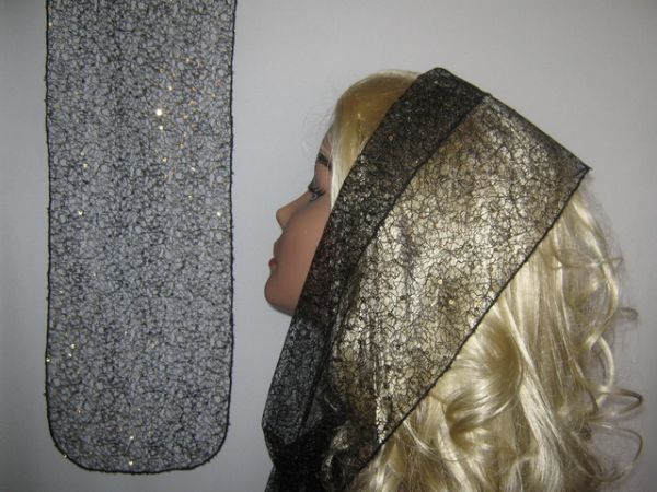 : Черный паутинковый шарф с вшитыми золотистыми блестками