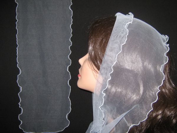 | Серый шарф из легкого тонкого фатина с волнистым ободком |