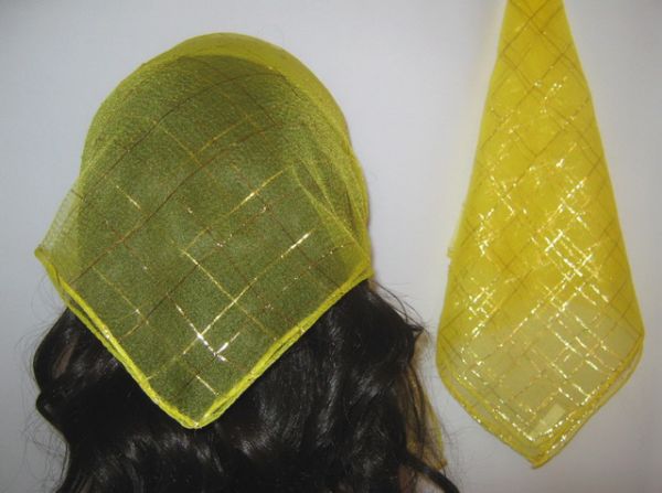 : Желтая нейлоновая косынка в золотую клетку