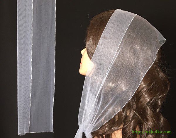 | Светло-серый легкий фатиновый шарф с наклееным блестящим узором по контуру |