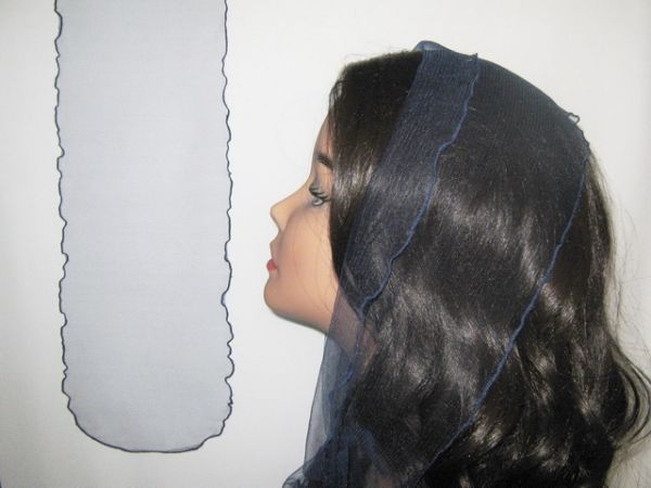 : Синий шарф из легкого тонкого фатина с волнистым ободком