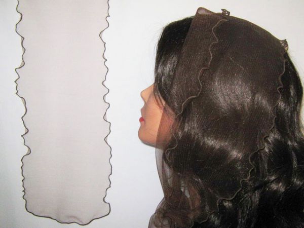 | Коричневый шарф из легкого тонкого фатина с волнистым ободком |