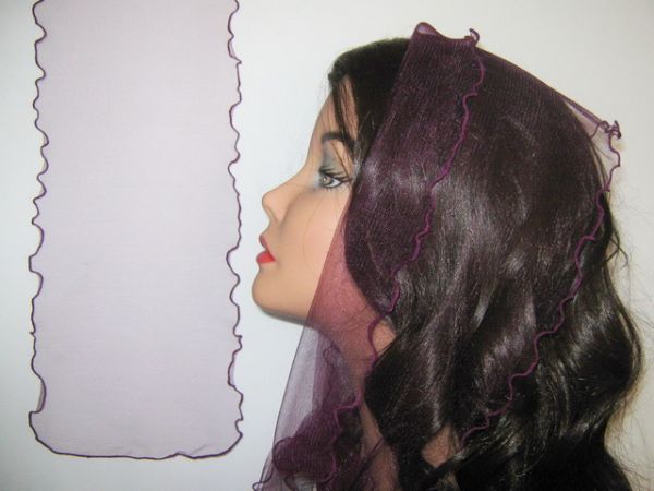 | Фиолетово-баклажановый фатиновый шарф с бордовым волнистым ободком |