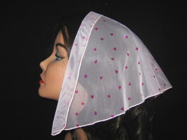 | Светло-розовая фатиновая накидка с малиновыми блестками и прямым ободком |