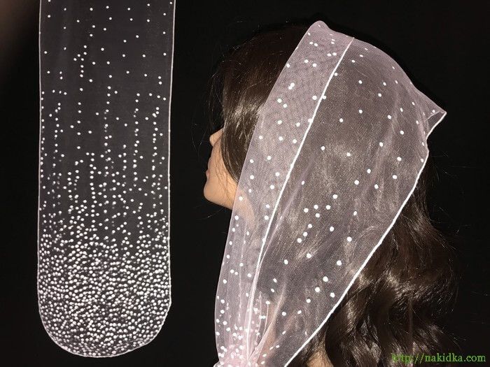 | Светло-розовый фатиновый шарф с белыми и серебристыми горошками |