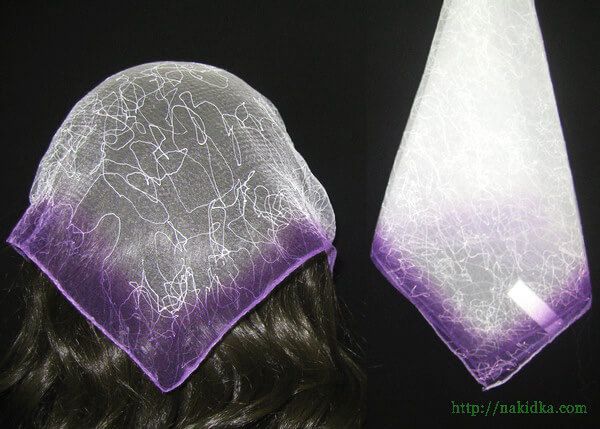 | Утененная нейлоновая косынка с белой серединой и фиолетовыми краями с паутинкой |