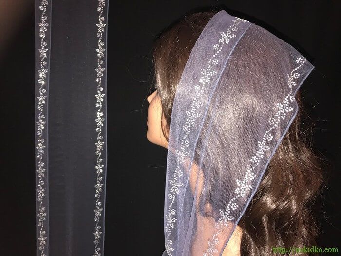 | Серый с фиолетовым оттенком легкий фатиновый шарф с наклееным блестящим |