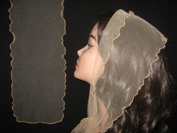 | Желто-бежевый легкий фатиновый шарф с волнистым ободком |