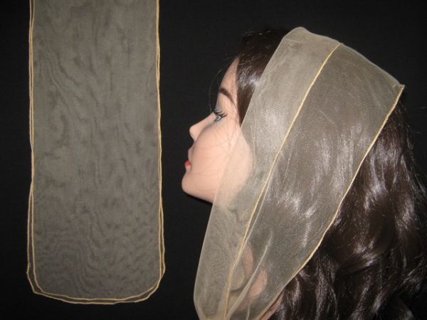 | Желто-бежевый легкий фатиновый шарф с ровным ободком |