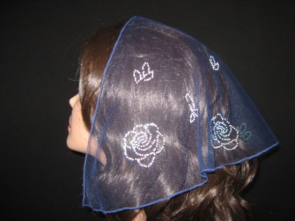 | Синяя легкая фатиновая накидка с наклееным блестящим узором |
