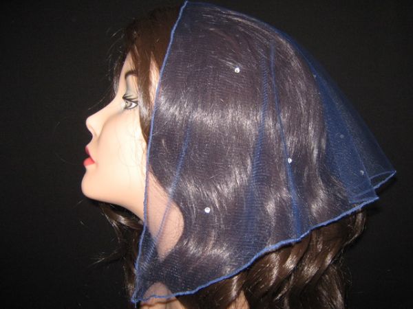 | Синяя легкая фатиновая накидка с наклееным блестящими камушками |