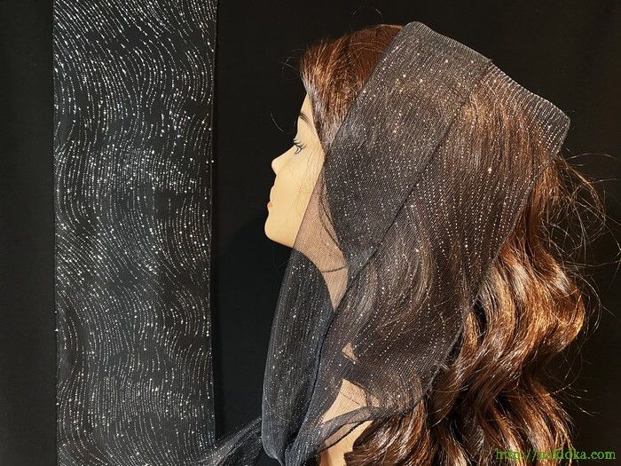 | Черный легкий фатиновый шарф с вшитыми серебристыми блестками |