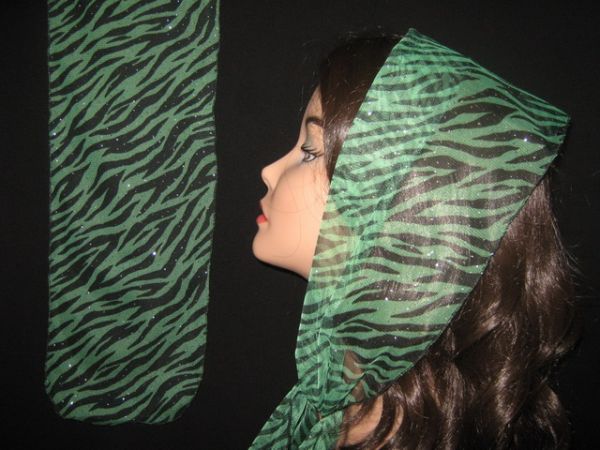| Фатиновый шарф тигристый зелено-черный с черным прямым ободком |
