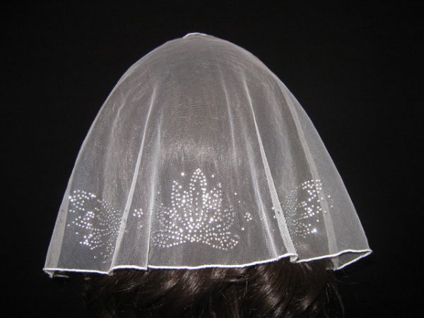 | Белая очень легкая фатиновая накидка с наклееным блестящим узором |