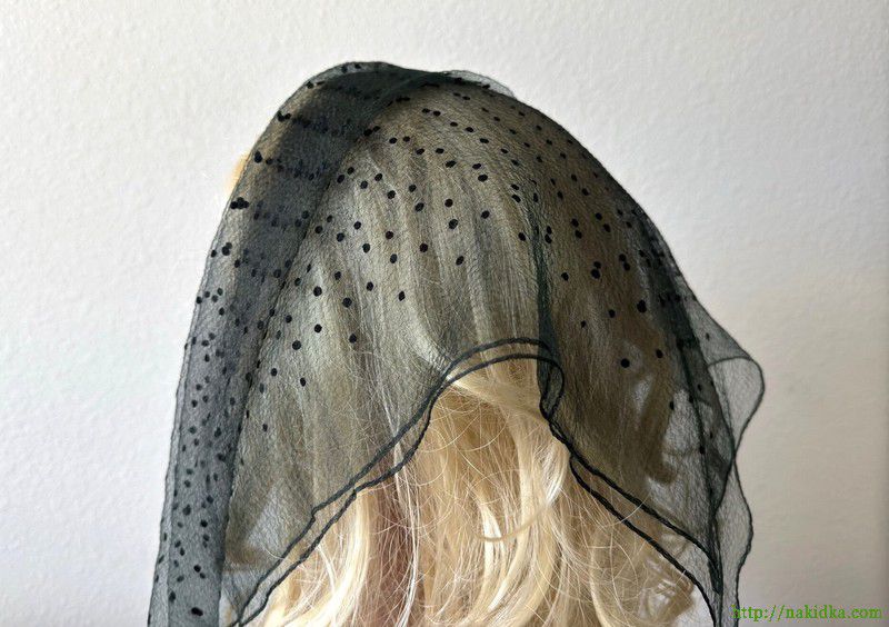 | Темно-темно-зеленая нейлоновая косынка в мелкий черный горошек |