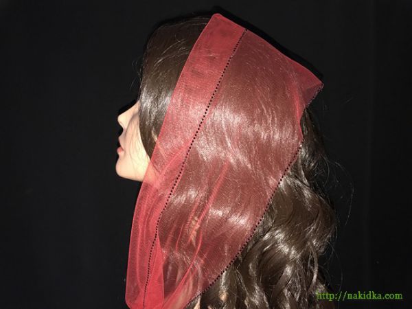 | Красный легкий фатиновый шарф с наклееным черным узором по ободку |