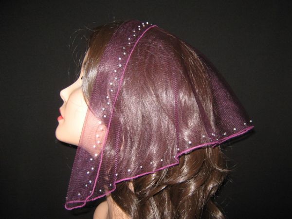 | Баклажаново-фиолетовая очень легкая фатиновая накидка с наклееными блестящими камушками |