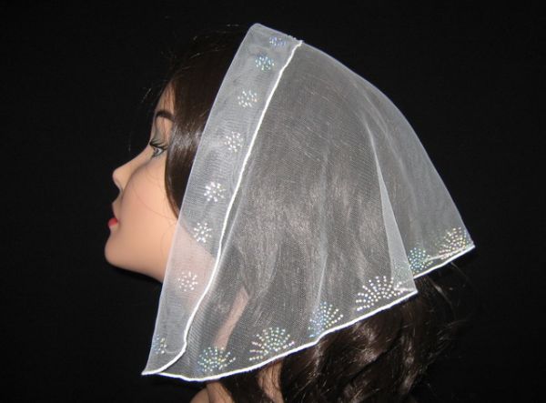 | Белая очень легкая фатиновая накидка с наклееным переливающимся узором |