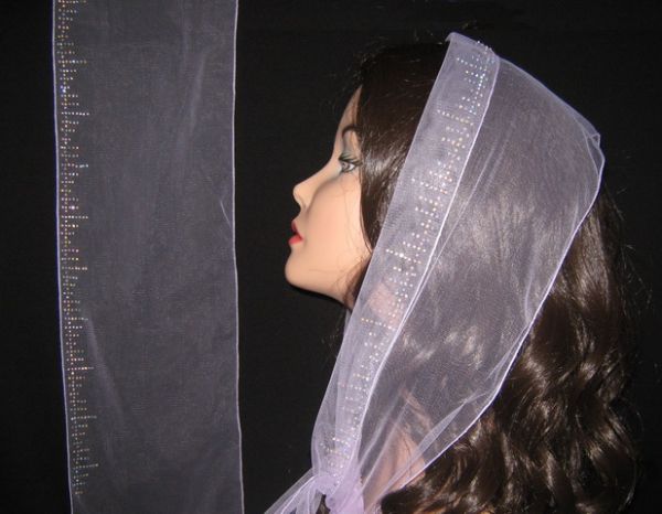 | Светло-фиолетовый легкий фатиновый шарф с наклееным перламутровым узором |
