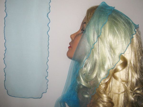 : Бирюзовый легкий фатиновый шарф с волнистым ободком