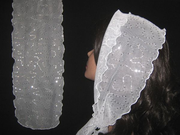 | Белый фатиновый шарф с аппликацией и белым волнистым ободком |