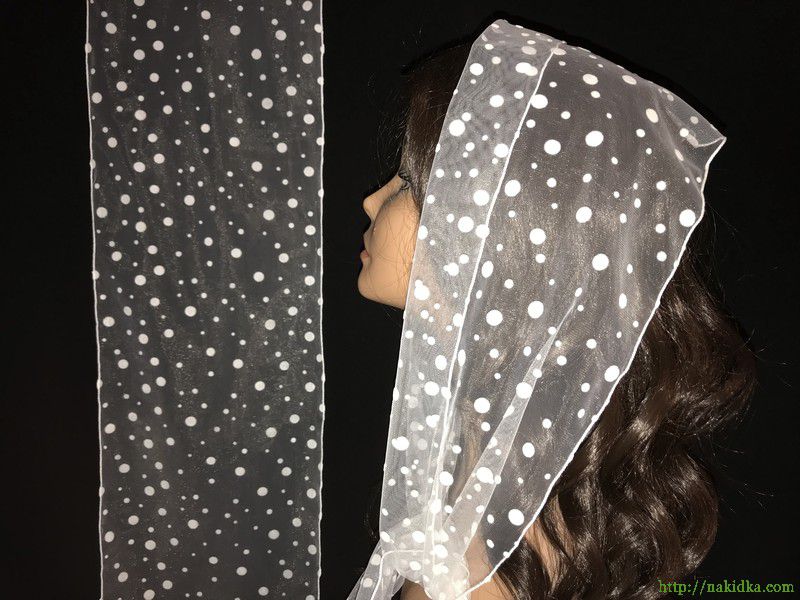 | Белый легкий фатиновый шарф с белыми горошками и прямым ободком |