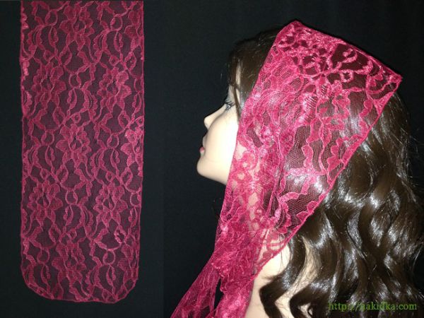 Красно-бордовый гипюровый шарф с узором