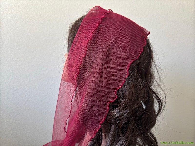 : Бордовый фатиновый шарф с отливом с волнистым ободком