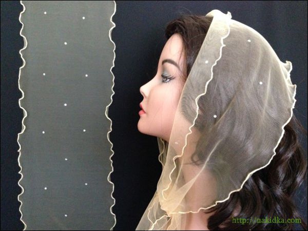 | Бежевый легкий фатиновый шарф с наклееным блестящими камушками |