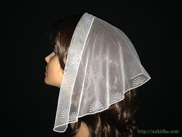 | Белая легкая фатиновая накидка с наклееным перламутровым узором |