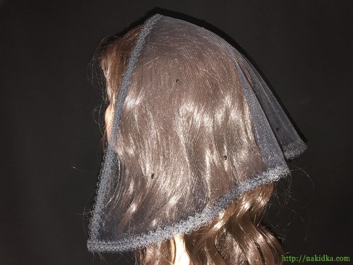| Черная легкая фатиновая накидка с наклееными камушками и нашитым по краю кружевом |