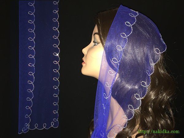 | Синий легкий фатиновый шарф с наклееным блестящим узором по ободку |