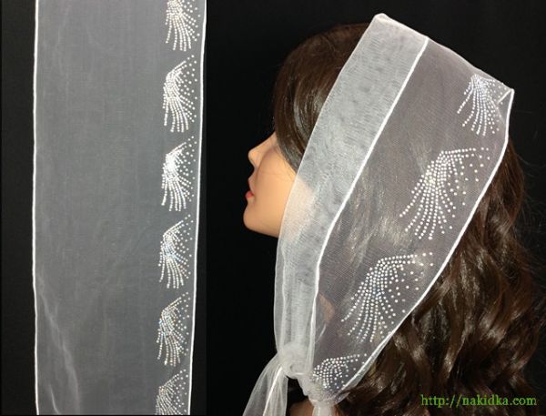 | Белый легкий фатиновый шарф с наклееным перламутровым узором |