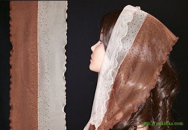 | Кофейный с коричневым двутонный фатиновый шарф с наклееными коричневыми камушками и волнистым ободком |