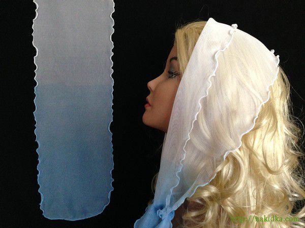 : Белый с голубым фатиновый стрейчевый шарф с волнистым ободком