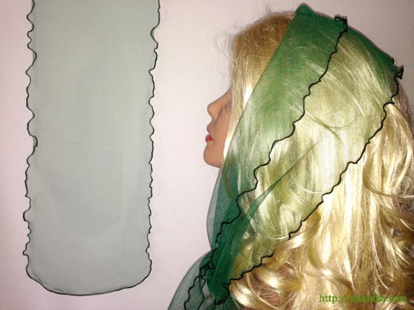 : Зеленый фатиновый шарф с волнистым ободком