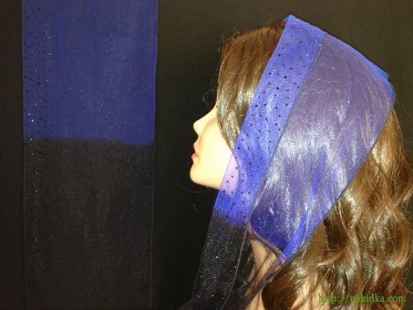 | Синий с черным легкий фатиновый шарф с наклееными черными камушками |