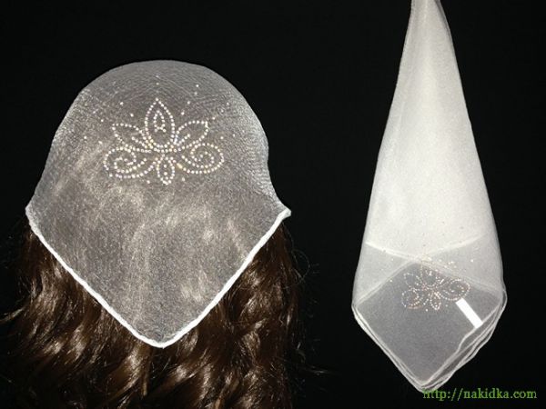 | Белая нейлоновая косынка с наклееным блестящим перламутровым узором |