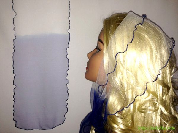 | Белый с синим легкий фатиновый шарф с синим волнистым ободком |