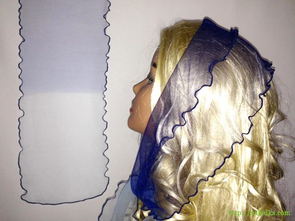 | Голубой с синим легкий фатиновый шарф с синим волнистым ободком |