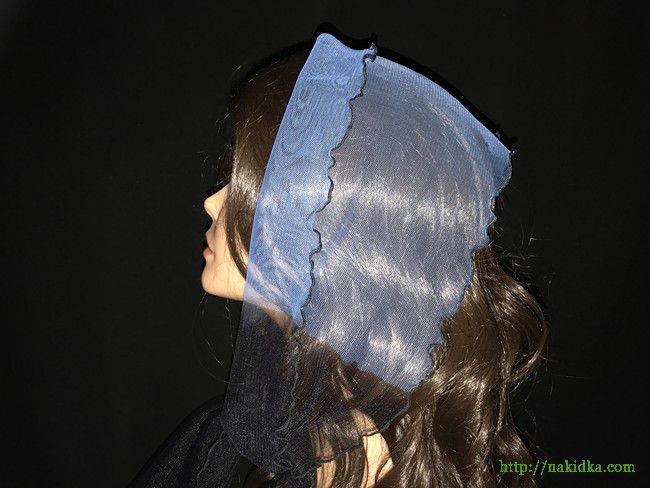 : Синий с черным легкий фатиновый шарф с волнистым ободком